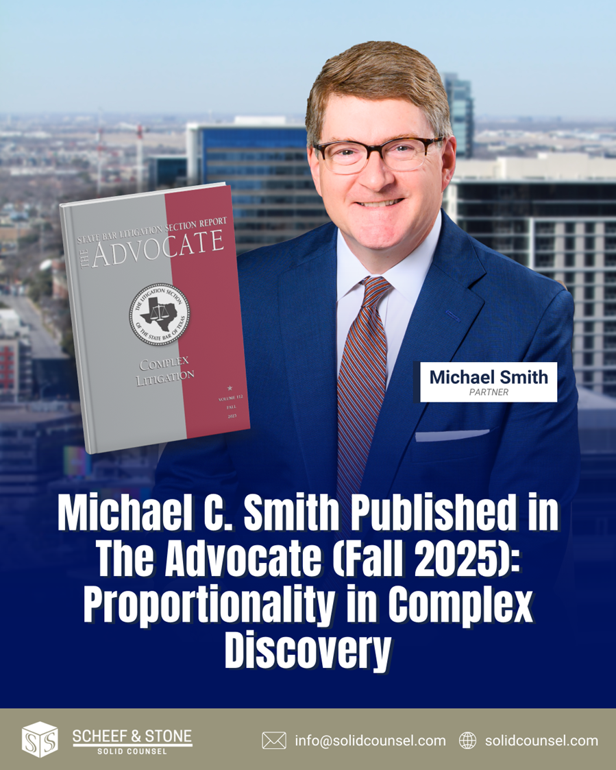 Scheef & Stone partner Michael C. Smith co-moderated the panel “Leadership from the Bench: Perspectives from the Texas Chiefs” at the 2025 Eastern District of Texas (EDTX) Bench Bar Conference, held October 23–24.